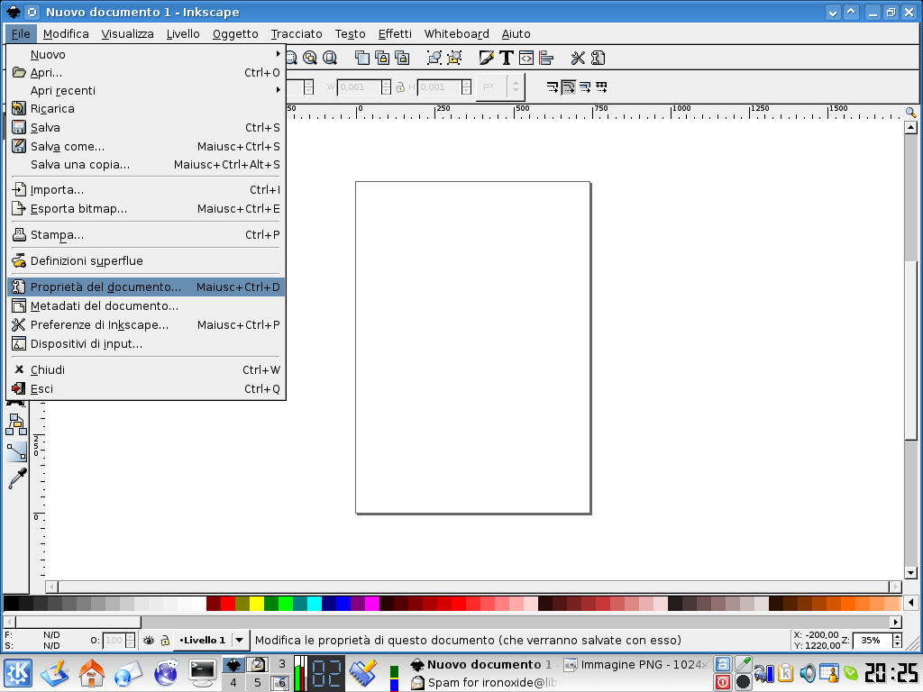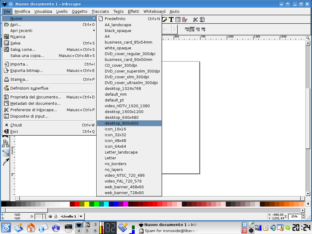 A questo punto inkscape offre la possibilità di creare un nuovo documento con un formato diverso da scegliere nell’apposita lista.